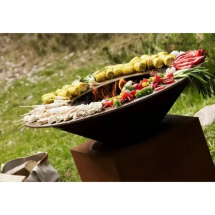 Une plancha unique au design original Avec son design et son système breveté, la plancha ORIGINE est unique. Elle offre une facilité d’utilisation inégalée pour une plancha au bois et permet des cuissons homogènes avec son foyer innovant. Deux tailles (diam 80cm ou 100cm) et deux finitions (acier peint ou corten) disponibles. Choix du modèle : Origine 800 Corten En stock