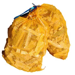 Bois d’allumage extra sec et 100 % naturel en filet de 40 litres avec poignée.