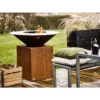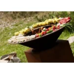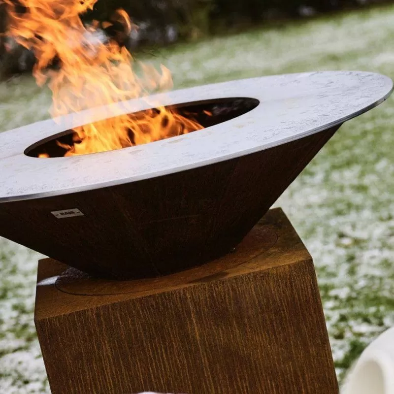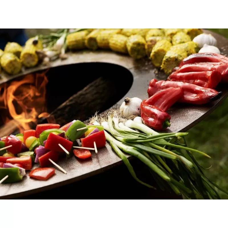 Un superbe brasero en acier corten avec plaque de cuisson.
