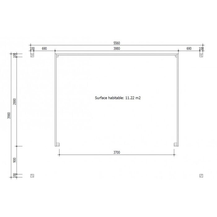 Dimensions extérieures madriers (lxP) 398x298cm