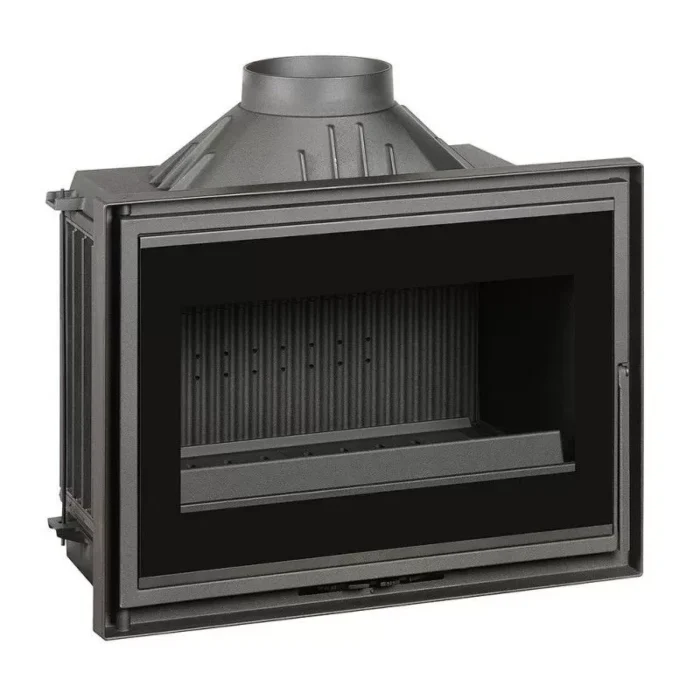 Vitre grand angle – Une grande vitre, positionnée à l’extérieur de la porte, pour une large vision sur les flammes et un design moderne.