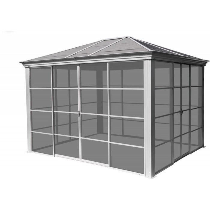 Pavillon Striano 362x298cm en aluminium et acier galvanisé avec moustiquaires