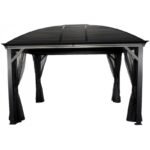 Avec sa couleur anthracite, cette pergola autoportante du fabricant Sojag s’intégrera parfaitement dans votre jardin. Sa surface de 12,60m² vous permettra d’y installer un spa ou des meubles confortables pour profiter des beaux jours d’été. La moustiquaire en mailles de polyester enduit de PVC est incluse avec la tonnelle. Celle-ci est équipée de 2 rails permettant d’ajouter également des murs souples (en option), vous serez ainsi idéalement protégés contre la pluie et le vent. Afin d’optimiser la circualtion d’air et de profiter d’une fraîcheur maximale pendant des jours chaudes et ensoleillées, il est recommandé de laisser ouverts les rideaux et la moustaiquaire.