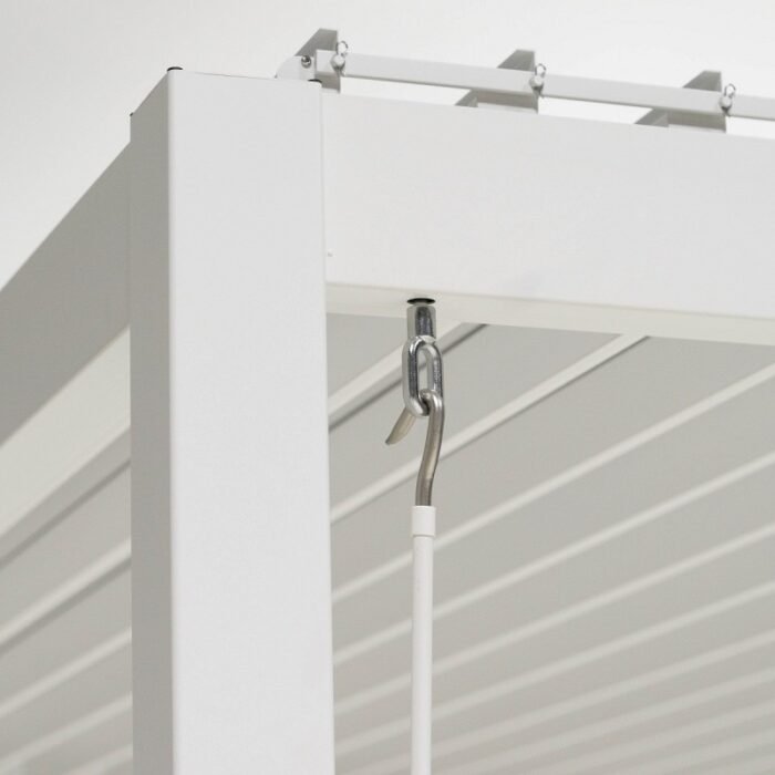 Si vous souhaitez installer des stores sur votre pergola Ombrea, vous pouvez ajouter trois stores Ombrea de 3M mais vous ne pourrez pas en positionner un sur le dernier côté car il y a la manivelle.