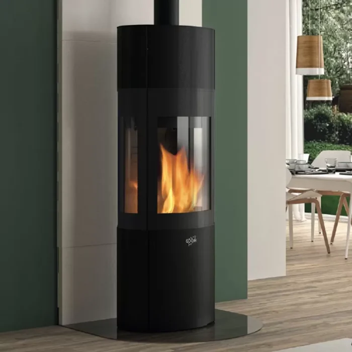 Le poêle à bois ARNEL est fabriqué en acier autour d’un foyer en fonte. Étanche, il est parfaitement adapté pour le chauffage d’habitations récentes (BBC, RT2012, RT2020). Son format “rond” permet une intégration aisée. Avec ses trois côtés vitrés, il fait la part belle aux flammes pour une ambiance très chaleureuse.