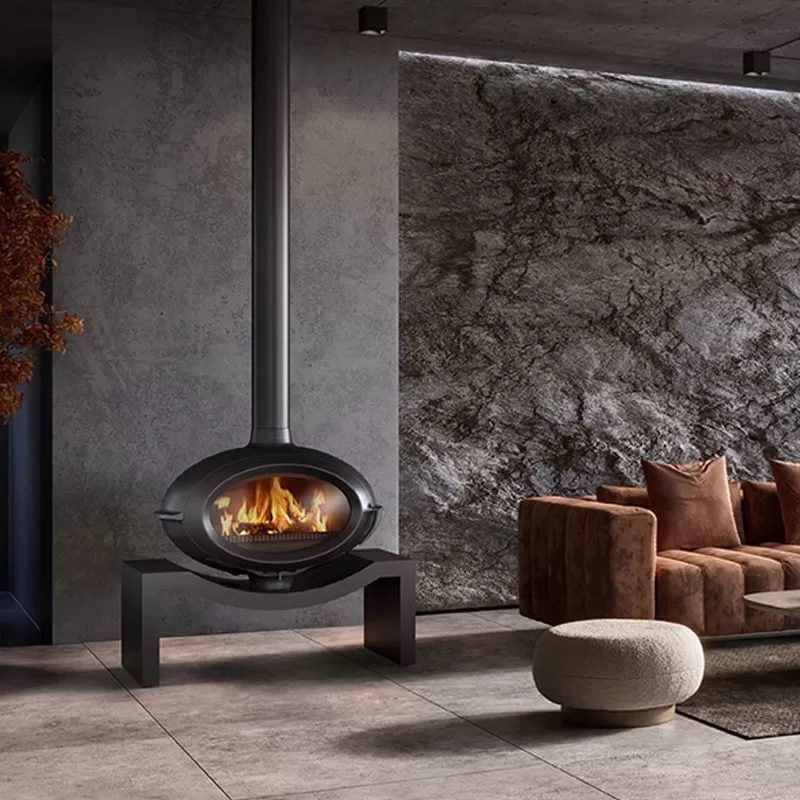 Les poêles BRIO connaissent un succès certain depuis leur lancement en 2021. Voici le dernier-né, posé sur un banc de 1m de large, il propose une version plus compacte et symétrique de l’autre modèle de BRIO sur banc. Il est raccordable et fabriqué en fonte (le banc est en acier) .