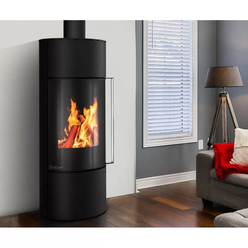 Le poêle à bois EMBER F11 VS est un poêle au format cylindrique. On apprécie sa grande porte vitrée qui offre un niveau de finition haut de gamme (VS). Pour plus de confort au quotidien, les poignées (porte, air primaire et secondaire) sont à faible conductivité thermique. Dans sa base, il dissimule une discrète niche à bûche. Enfin, en option, il peut accueillir un accumulateur de chaleur dans le caisson supérieur.