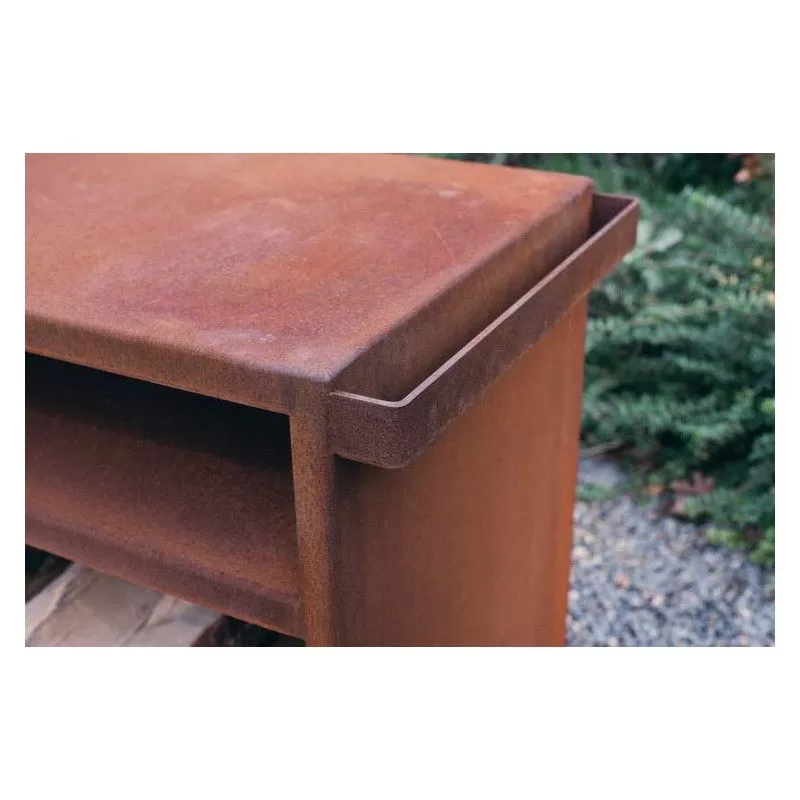 Ce meuble de jardin a été spécialement conçu pour accueillir une plancha et offrir un plan de travail pour cuisiner confortablement. Fabriqué en acier corten, il est tout particulièrement robuste et résistera aux intempéries. Il est destiné aux planchas C 80 ou 100 de chez Outr, mais vous pouvez aussi le destiner à d’autres usages .